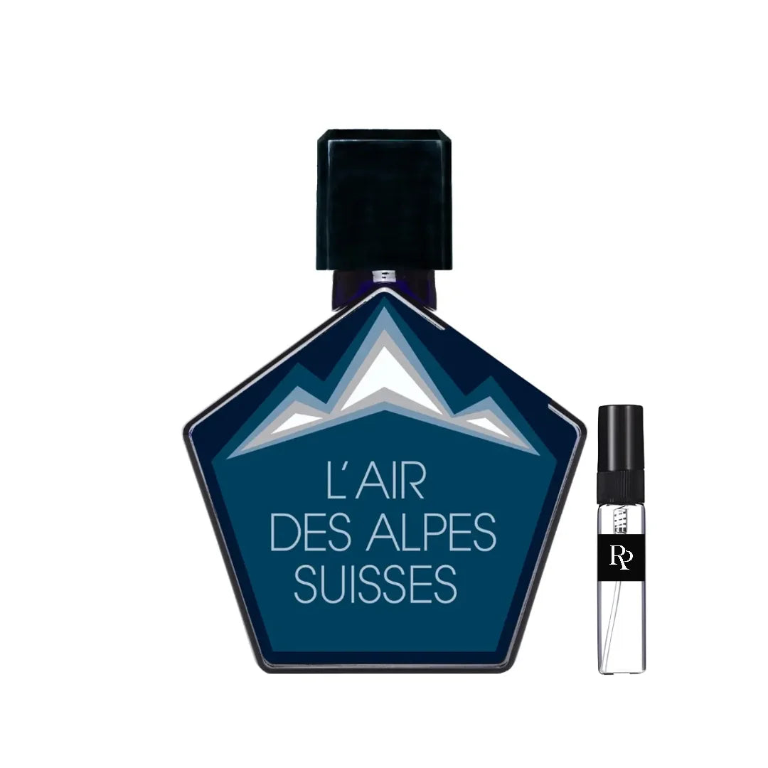 L`AIR DES ALPES SUISSES se basa en ingredientes de la más alta calidad. Varios acordes juegan con el tema del senderismo desde el valle con sus pequeños pueblos hasta la tierra de hielo y nieve: los acordes de madera están construidos con notas de ámbar gris, tonka, abeto y abedul y agujas secas, notas florales de lirio y la orquídea equilibra la orquesta picante con notas de tomillo silvestre y albahaca, palo de rosa, nuez moscada, lavanda de montaña y una pizca de bálsamo de limón.